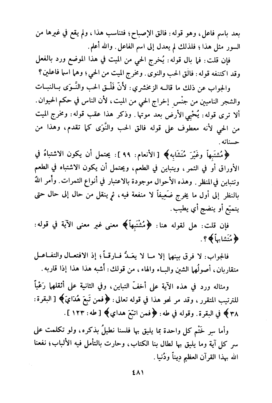 سر كل آية وما يليق بها لطال بنا الكتاب، وحارت بالتأمل فيه الألباب، نفعنا الله بهذا القرآن العظيم دِيناً ودُنيا.