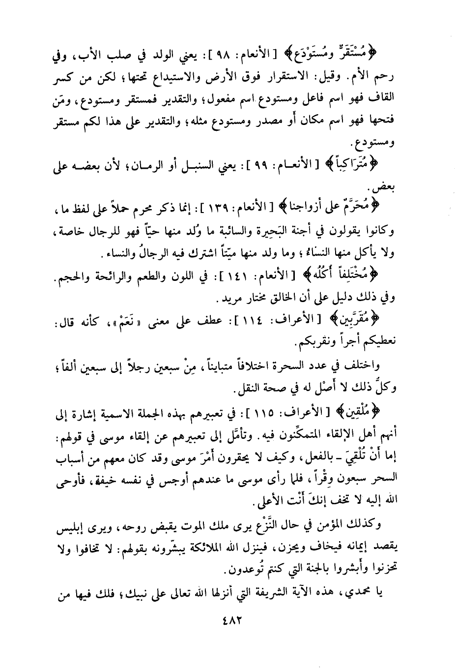 (متَرَاكِبا) : يعني السنبل أو الرمان، لأن بعضه على بعض.