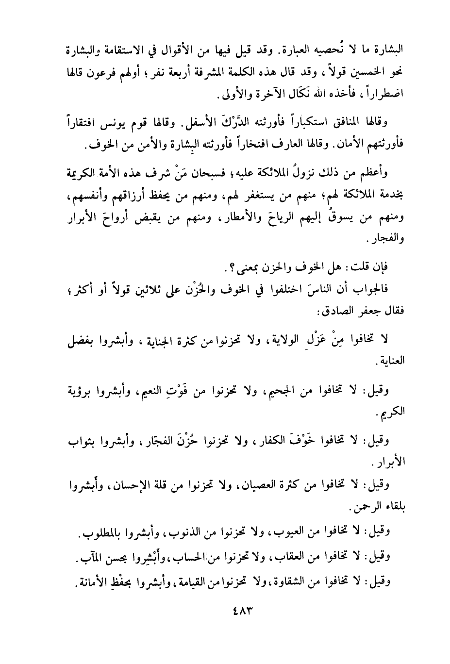 فالجواب أن الناسَ اختلفوا في الخوف والخزْن على ثلاثين قولاً أو أكثر