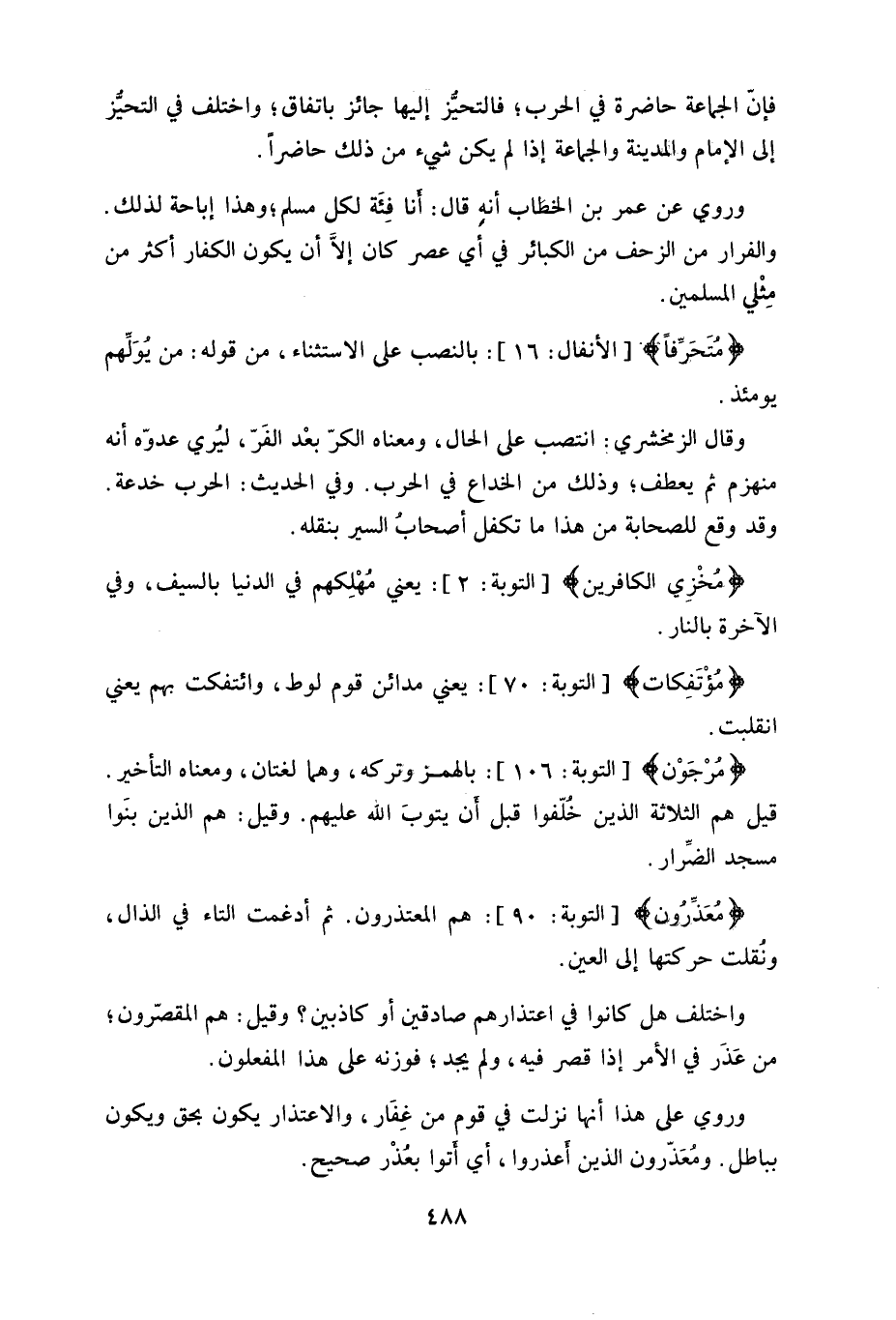 وقال الزمخشري: انتصب على الحال، ومعناه الكرّ بعْد الفَرّ، ليُري عدوّه أنه منهزم ثم يعطف، وذلك من الخداع في الحرب.