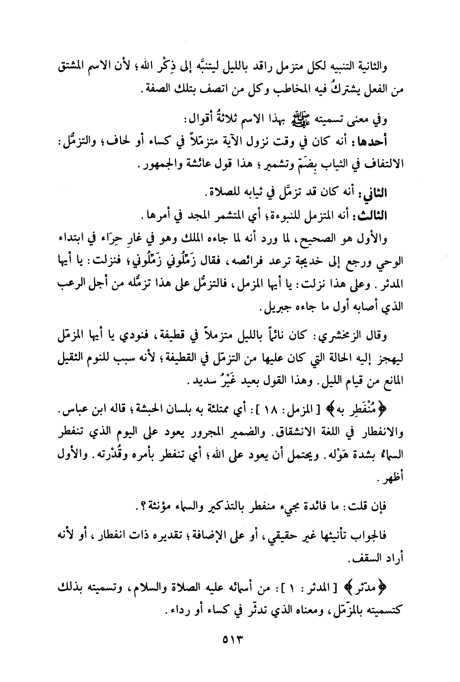والثانية التنبيه لكل متزمل راقد بالليل ليتنبَّه إلى ذِكْر الله، لأن الاسم المشتق