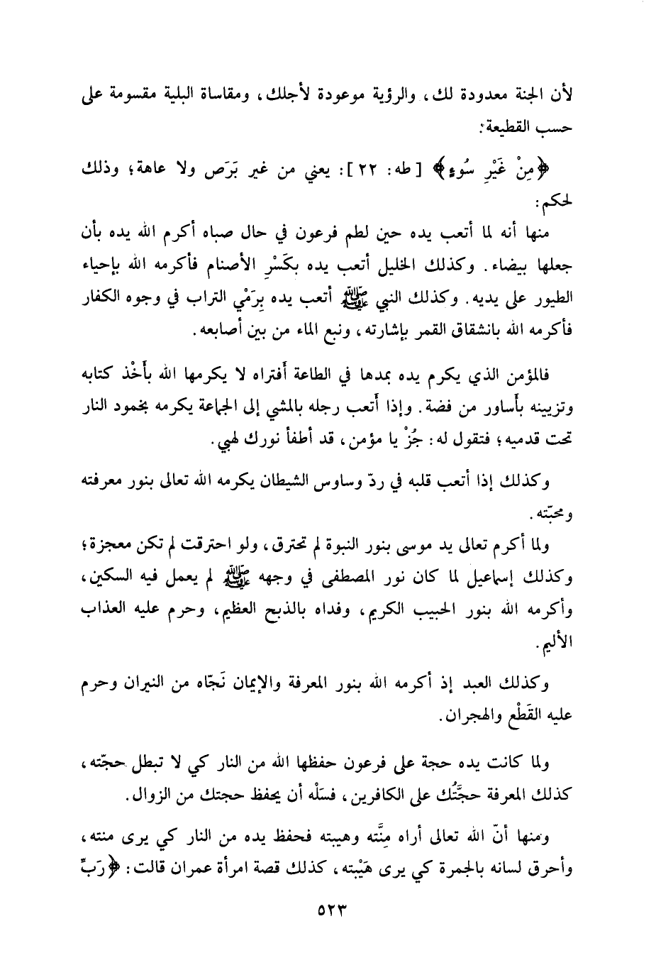 ولما كانت يده حجة على فرعون حفظها الله من النار كي لا تبطل حجّته.