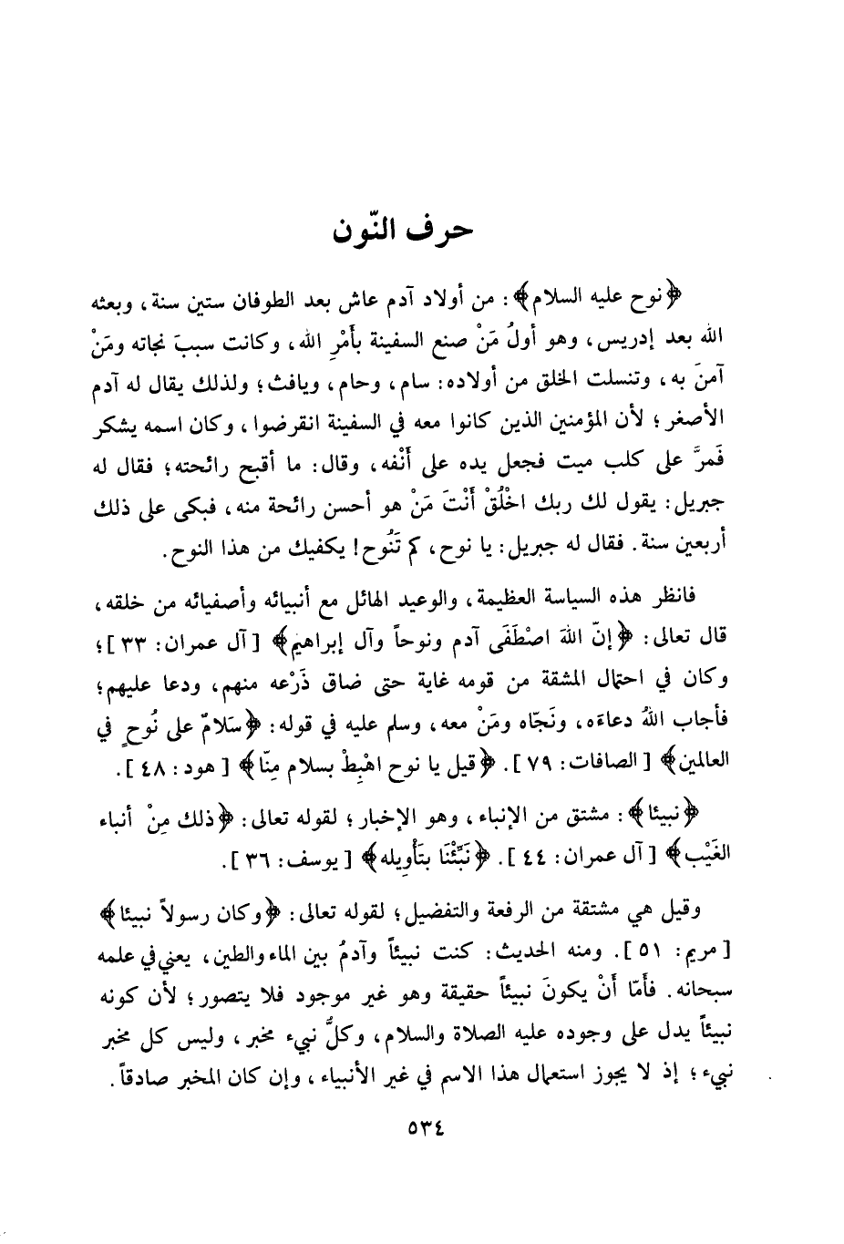 اللَه بعد إدريس، وهو أولُ مَنْ صنع السفينة بأمْرِ الله، وكانت سببَ نجاته ومَنْ آمنَ به، وتنسلت الخلق من أولاده: سام، وحام، ويافث، ولذلك يقال له آدم الأصغر، لأن المؤمنين الذين كانوا معه في السفينة انقرضوا، وكان اسمه يشكر فَمرَّ على كلب ميت فجعل يده على أنْفه، وقال: ما أقبح رائحته، فقال له جبريل: يقول لك ربك اخْلُقْ أنْتَ مَنْ هو أحسن رائحة منه، فبكى على ذلك أربعين سنة.