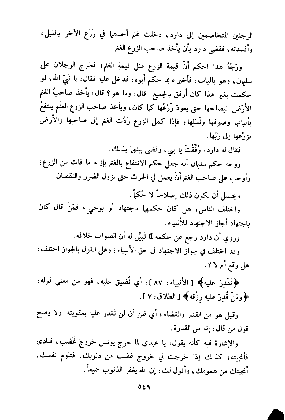 فقال له داود: وفِّقْتَ يا بُني، وقضى بينهما بذلك.