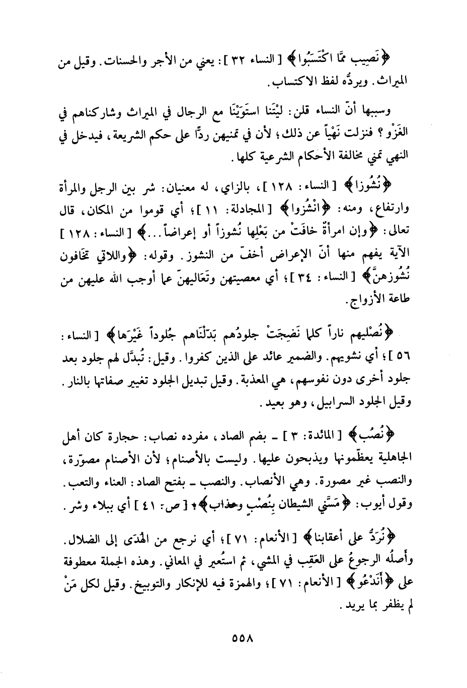 (نُصُب) - بضم الصاد، مفرده نصاب: حجارة كان أهل الجاهلية يعظّمونها ويذبحون عليها.