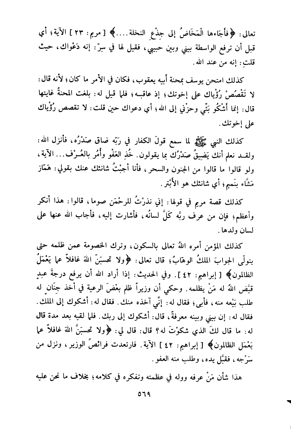 فلما لقيه بعد مدة قال له: ما قال لكَ الذي شكوْتَ له، قال: قال لي: (وَلَا تَحْسَبَنَّ اللَّهَ غَافِلًا عَمَّا يَعْمَلُ الظَّالِمُونَ) الآية.