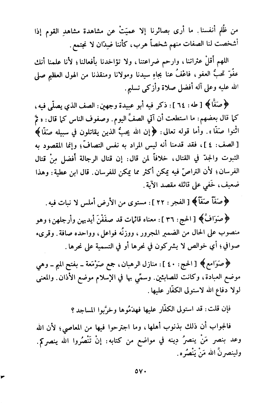 وأما قوله تعالى: (إن الله يحبّ الذين يقاتلون في سبيله صَفًّا) ، فقد قدمنا أنه ليس المراد به نفس التصافّ، وإنما المقصود به