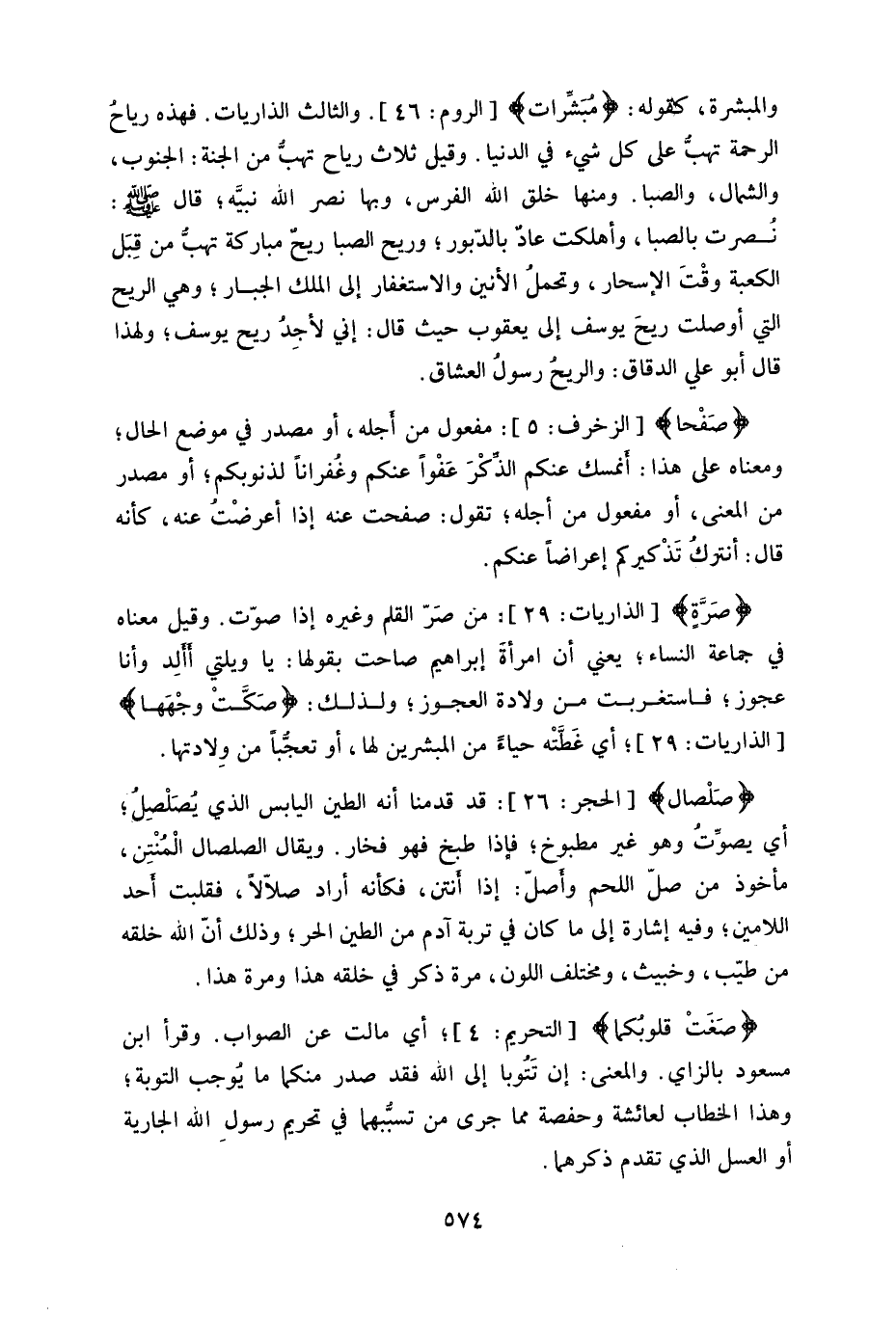 وريح الصبا ريح مباركة تهبُّ من قِبَل الكعبة وقْتَ الأسحار، وتحملُ الأنين والاستغفار إلى الملك الجبار، وهي الريح التي أوصلت ريحَ يوسف إلى يعقوب حيث قال: (إني لأجِد ريح يوسف) ، ولهذا قال أبو علي الدقاق: والريح رسول العشاق.