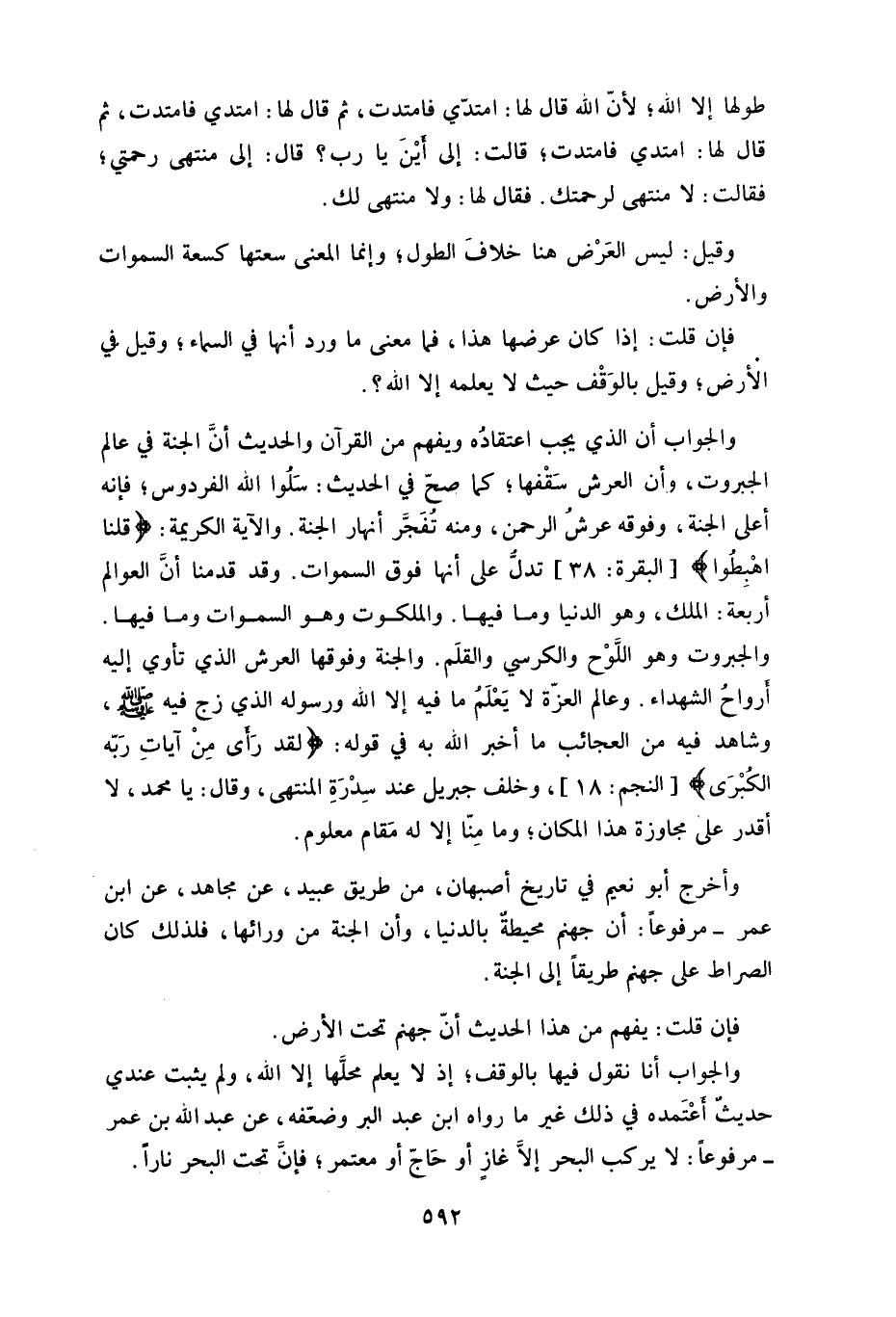والجواب أن الذي يجب اعتقادُه ويفهم من القرآن والحديث أنَّ الجنة في عالم