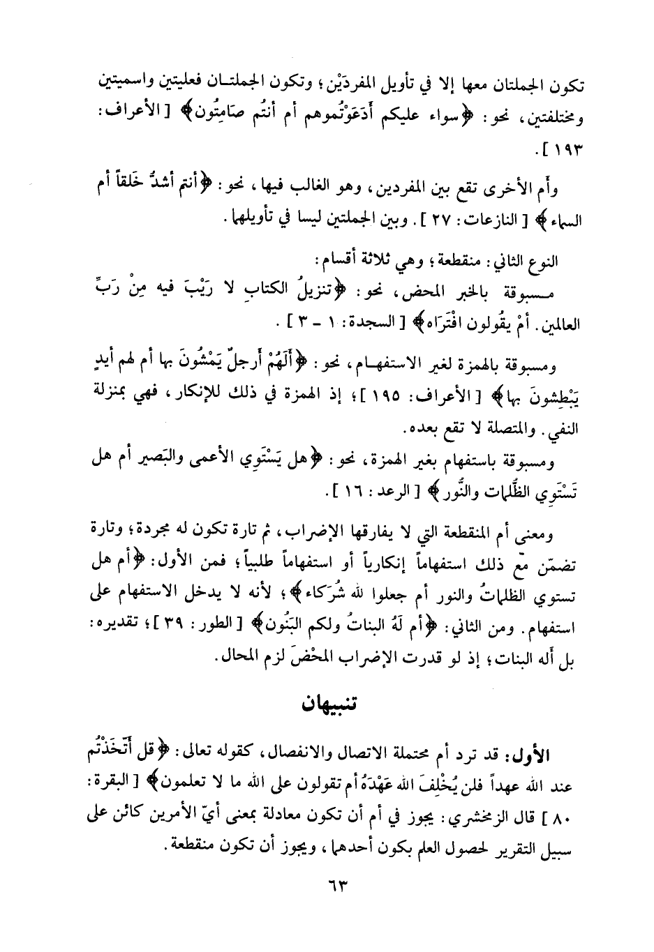 الأول: قد ترد أم محتملة الاتصال والانفصال، كقوله تعالى: (قُلْ أَتَّخَذْتُمْ عِنْدَ اللَّهِ عَهْدًا فَلَنْ يُخْلِفَ اللَّهُ عَهْدَهُ أَمْ تَقُولُونَ عَلَى اللَّهِ مَا لَا تَعْلَمُونَ (80) ، قال الزمخشري: يجوز في أم أن تكون معادلة بمعنى أيّ الأمرين كائن على