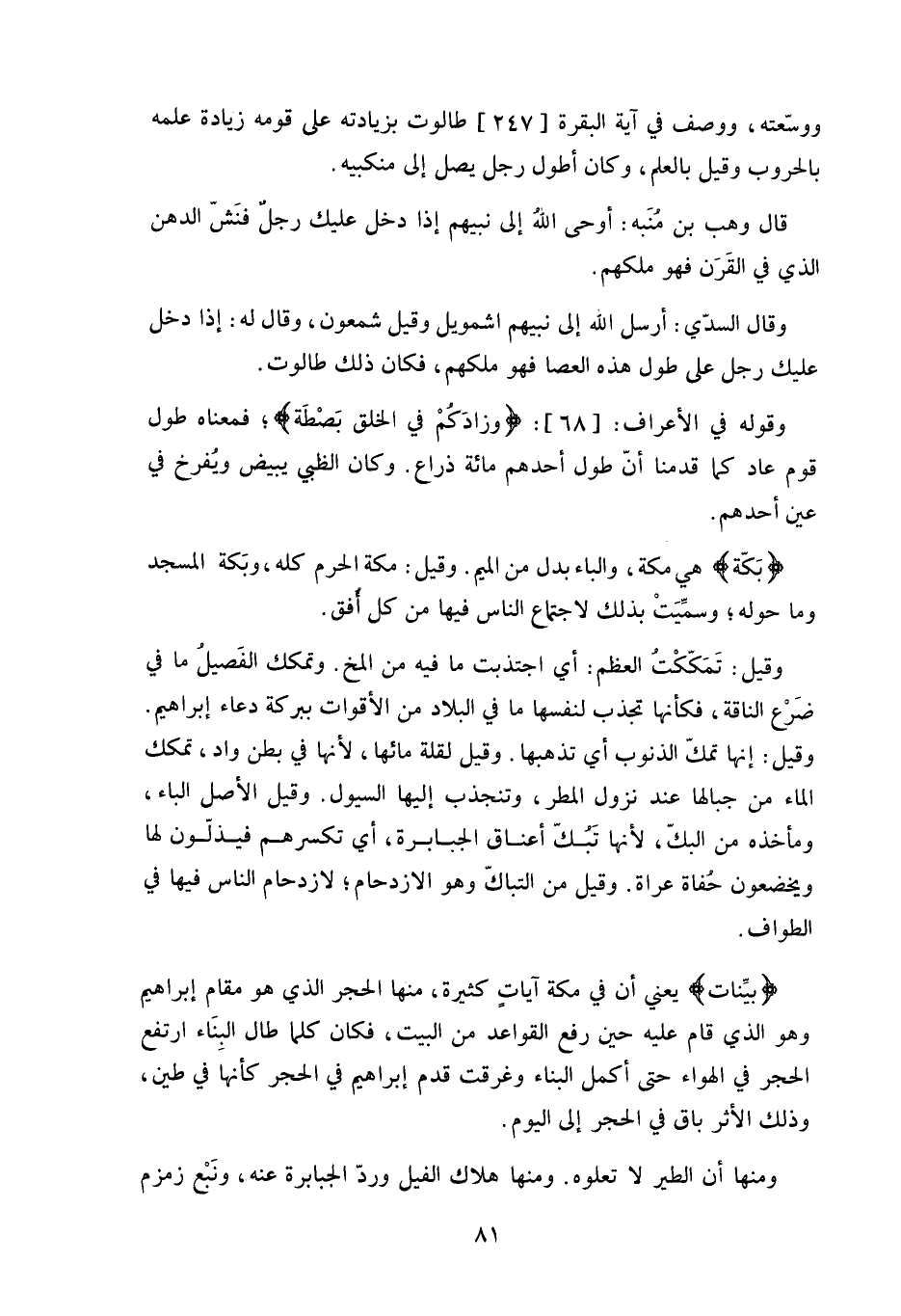 ووسّعته، ووصف في آية البقرة، طالوت بزيادته على قومه زيادة علمه
