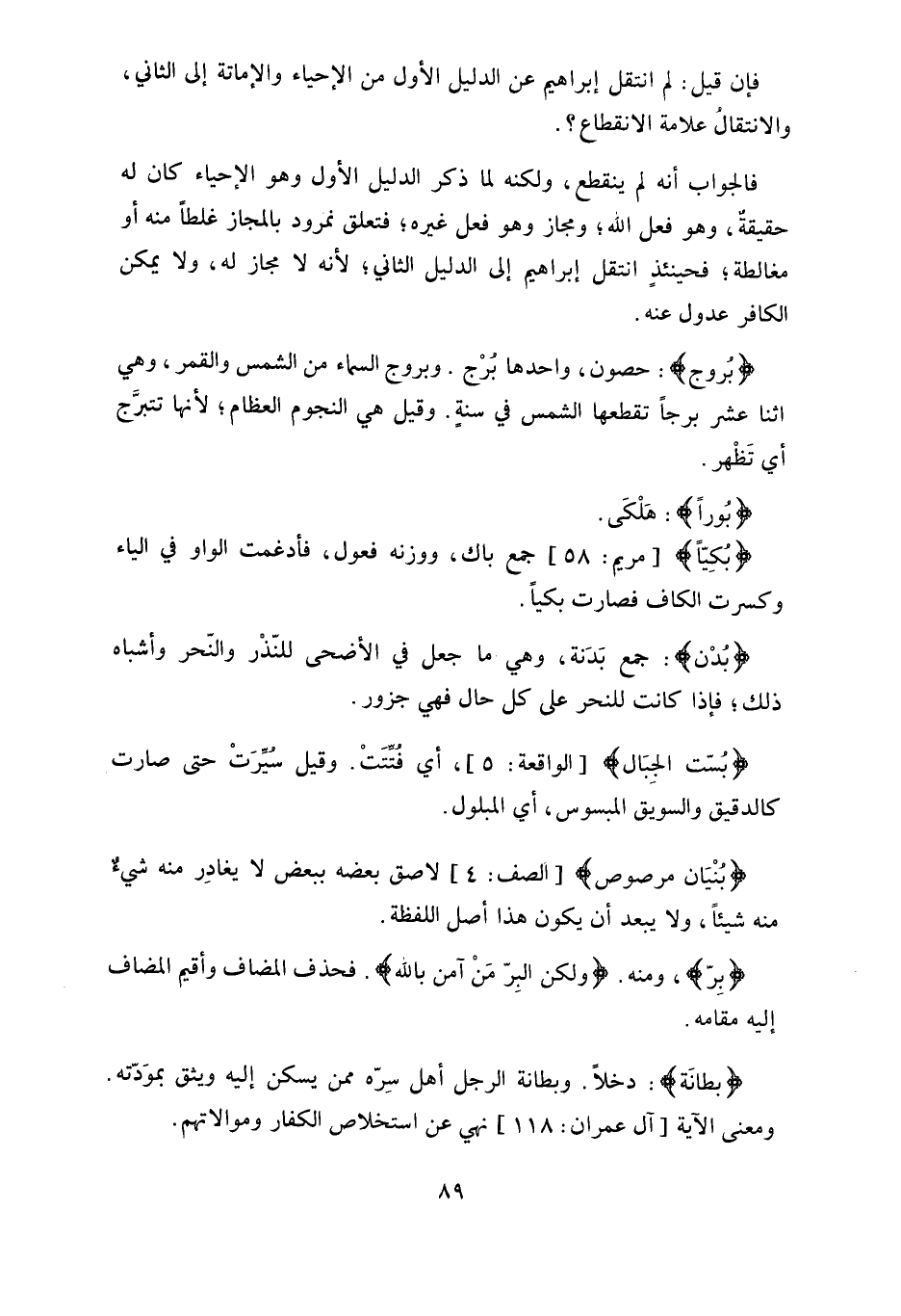 حقيقة، وهو فعل الله، ومجاز وهو فعل غيره، فتعلق نمرود بالمجاز غلطاً منه أو مغالطة، فحينئذٍ انتقل إبراهيم إلى الدليل الثاني، لأنه لا مجاز له، ولا يمكن الكافر عدول عنه.