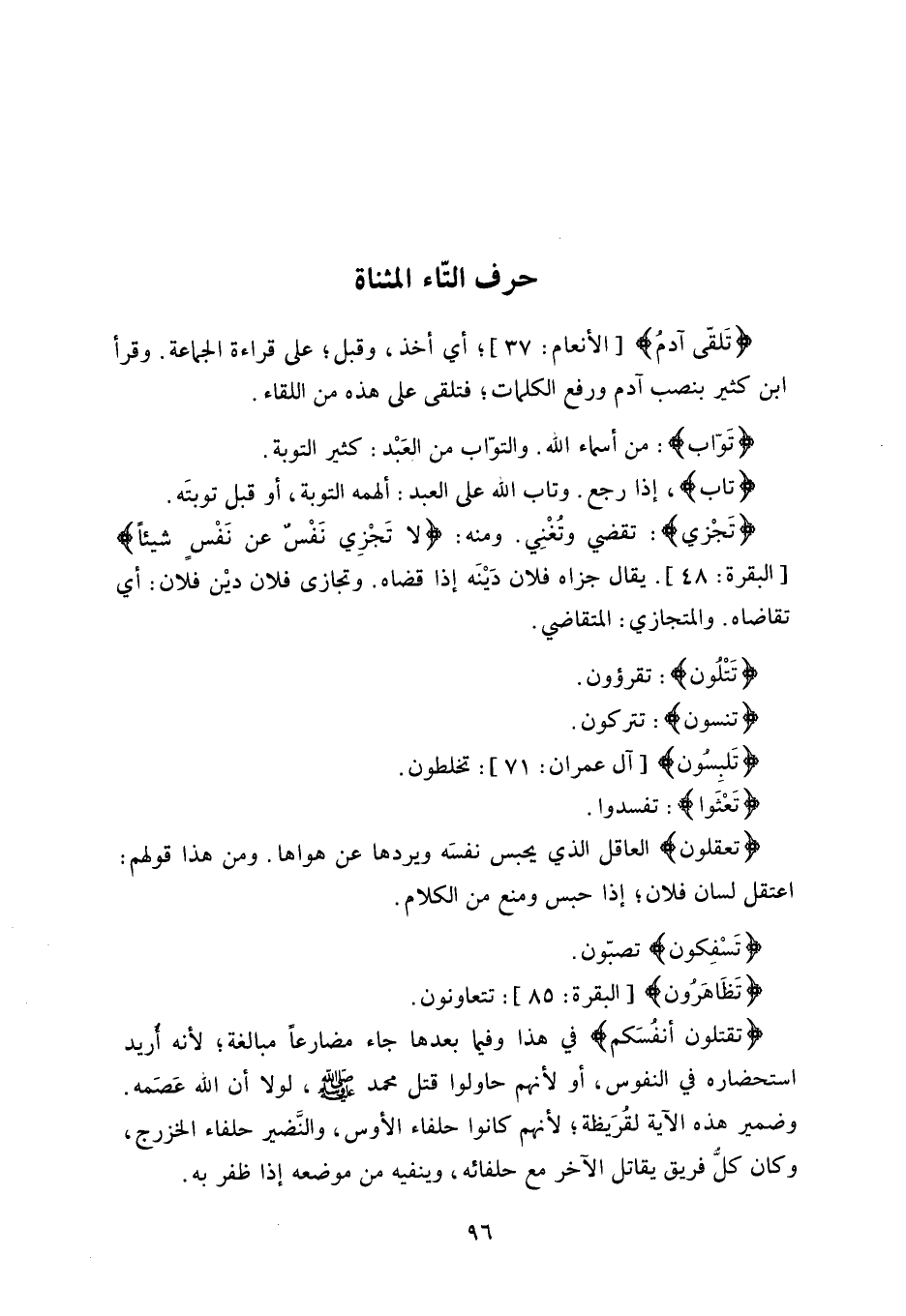 (تَلَقَّى آدَمُ) ، أي أخذ، وقبل، على قراءة الجماعة.
