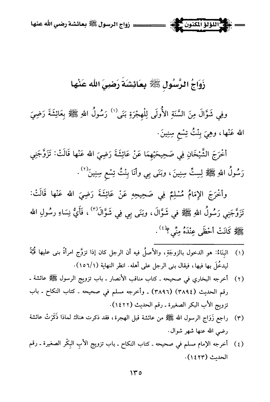 (¬3) راجع زَوَاج رسول اللَّه -صلى اللَّه عليه وسلم- من عائشة قبل الهجرة، فقد ذكرت هناك لماذا ذَكَرَتْ عائشة رضي اللَّه عنها شهر شوال.