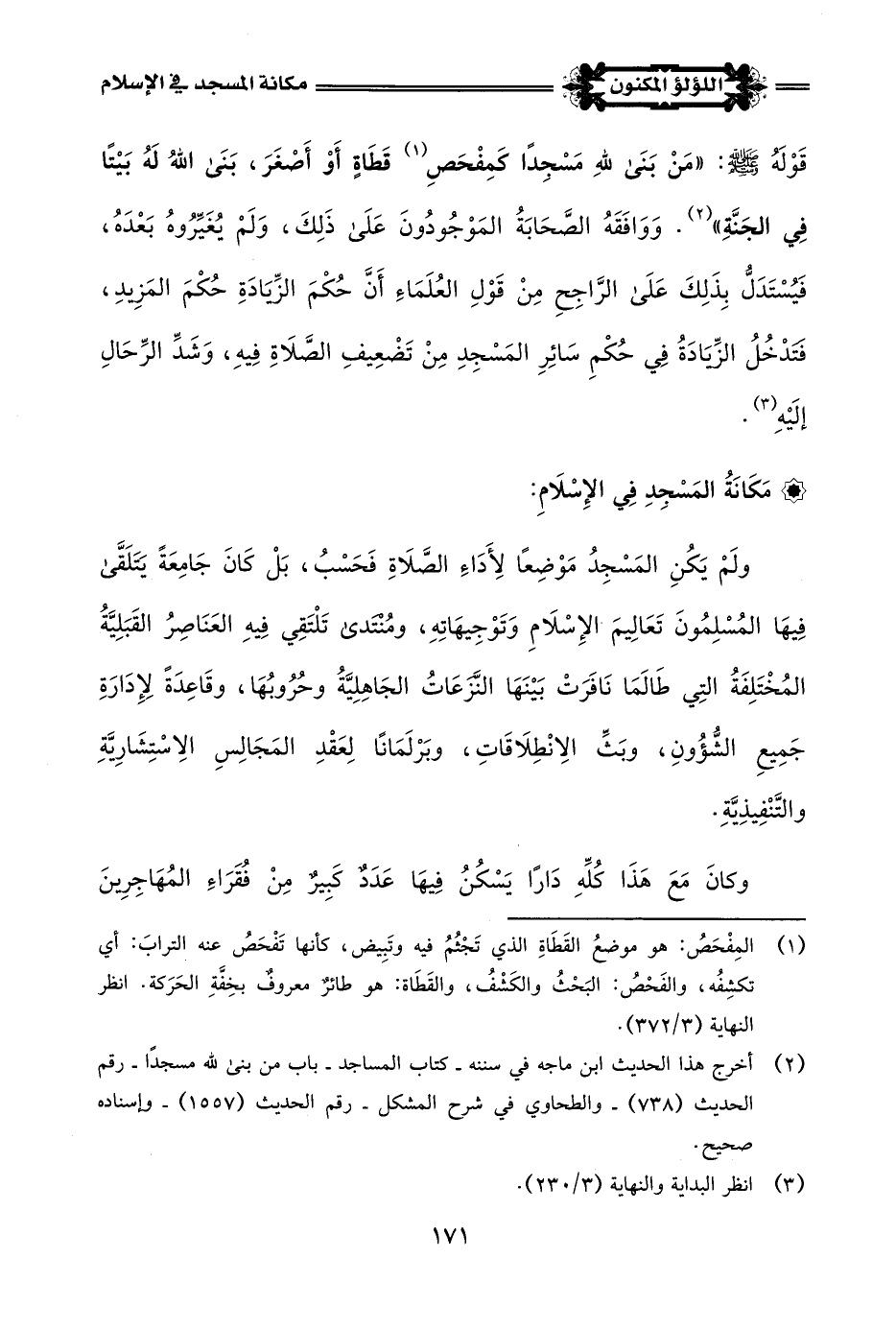 (¬2) أخرج هذا الحديث ابن ماجه في سننه - كتاب المساجد - باب من بني للَّه مسجدًّا - رقم الحديث (738) - والطحاوي في شرح المشكل - رقم الحديث (1557) - وإسناده صحيح.