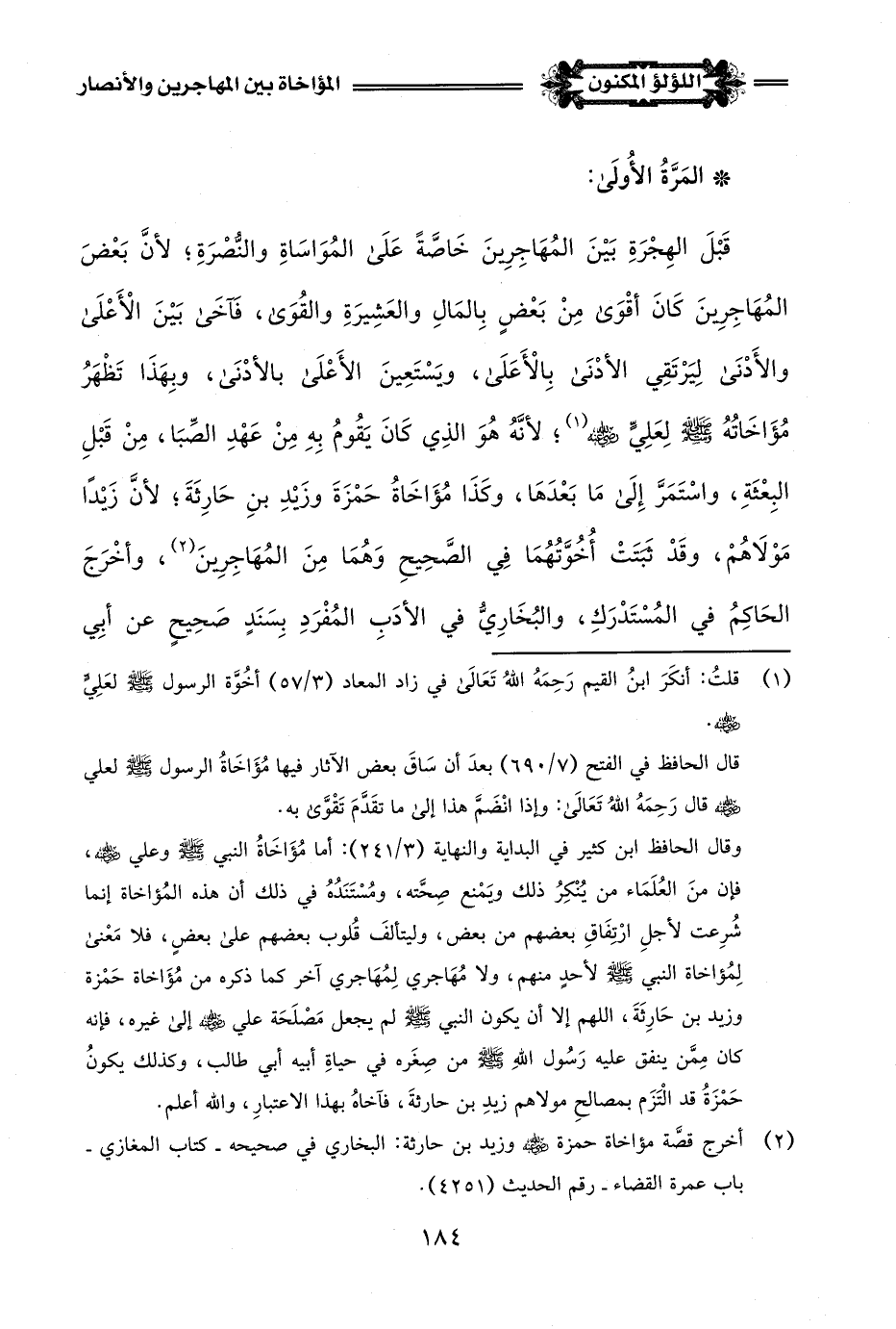 (¬1) قلتُ: أنكَرَ ابنُ القيم رَحِمَهُ اللَّهُ تَعَالَى في زاد المعاد (3/ 57) أخُوَّة الرسول -صلى اللَّه عليه وسلم- لعَلِيٍّ -رضي اللَّه عنه-.