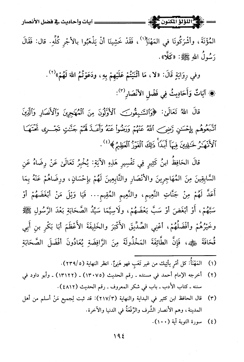 * آيَاتٌ وَأَحَادِيثُ في فَضْلِ الأَنْصَارِ (¬3):