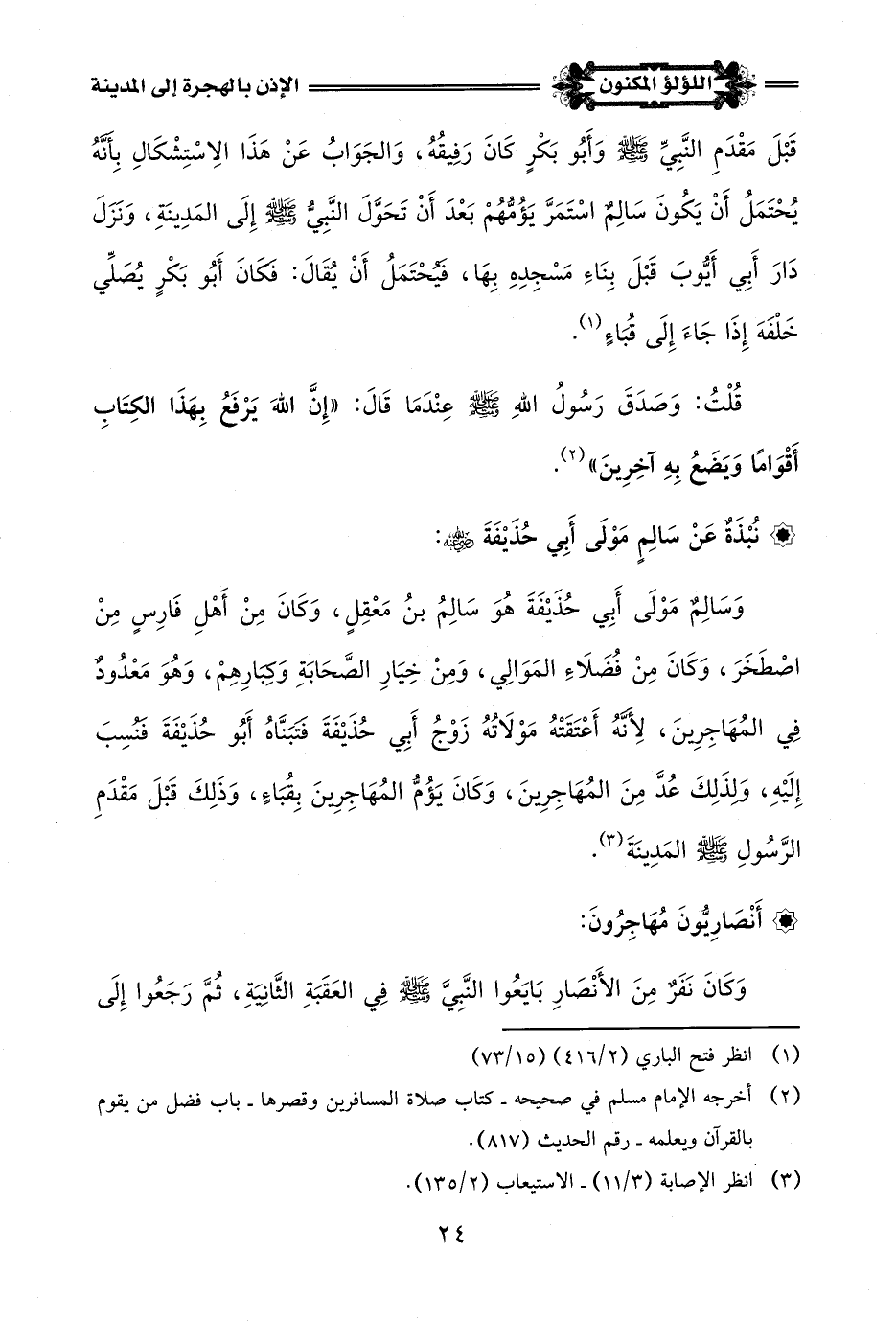 (¬1) انظر سيرة ابن هشام (2/ 89).