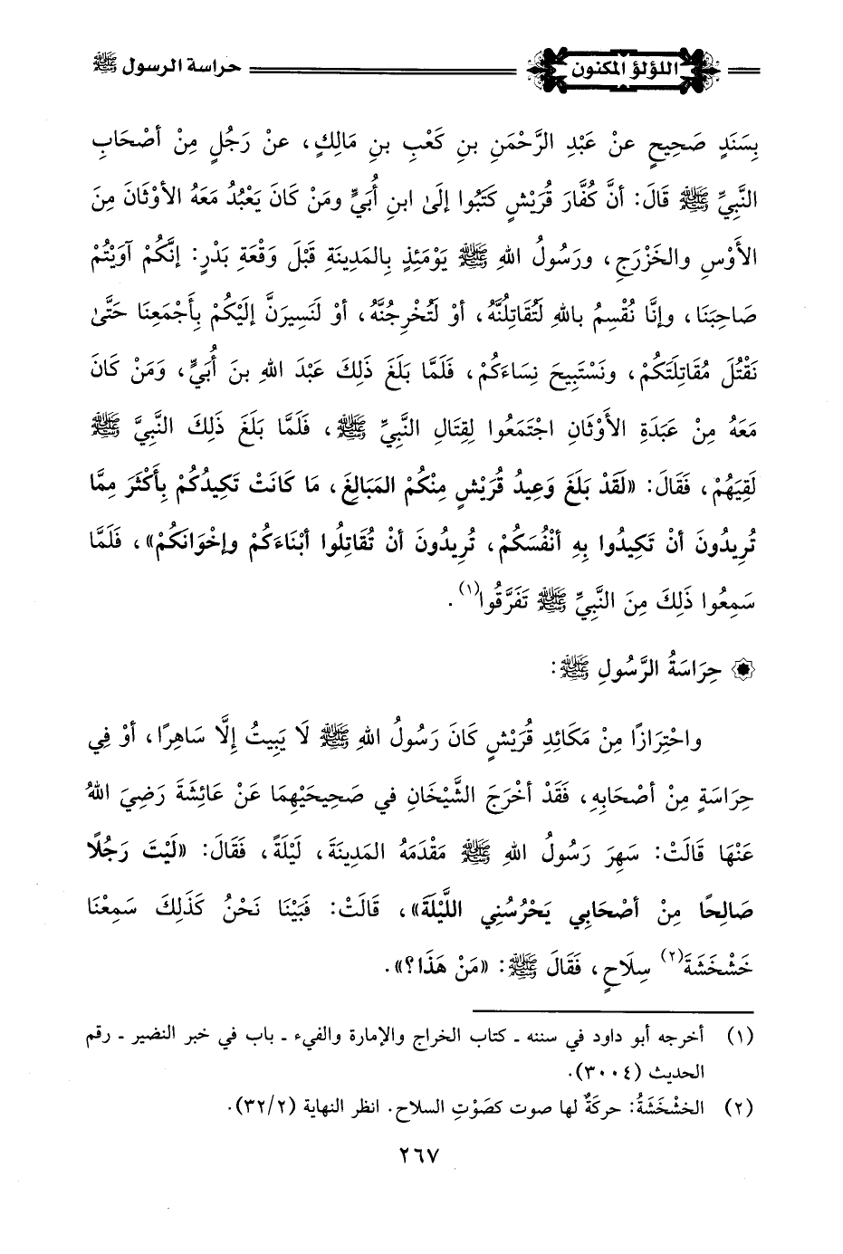 (¬2) أخرجه البخاري في صحيحه - كتاب الجهاد والسير - باب الحِراسة في الغزو في سبيل اللَّه - رقم الحديث (2885) - ومسلم في صحيحه - كتاب فضائل الصحابة - باب في فضل سعد بن أبي وقاص -رضي اللَّه عنه- رقم الحديث (2410) (40).