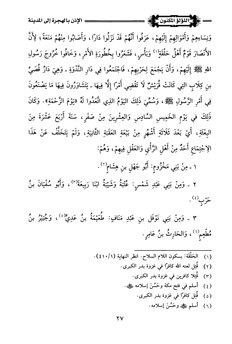 (¬1) انظر سيرة ابن هشام (2/ 73 - 79) - الطبقات الكبرى لابن سعد (1/ 109).