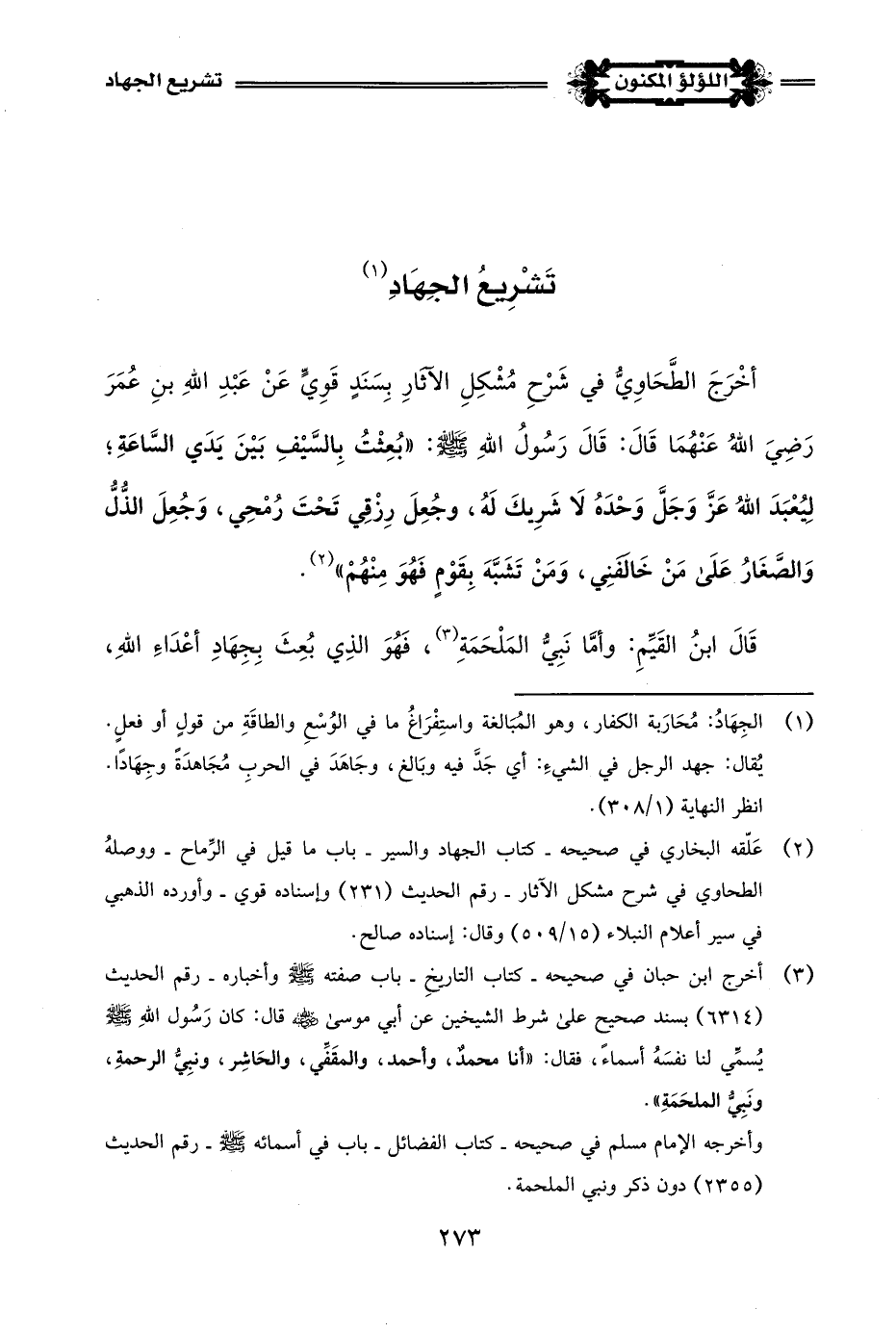 فَلَمْ يُجَاهِدْ نَبِيٌّ وَأُمَّتُهُ قَطُّ مَا جَاهَدَ رَسُولُ اللَّهِ -صلى اللَّه عليه وسلم- وَأُمَّتُهُ، والمَلَاحِمُ (¬1) الكِبَارُ التِي وَقَعَتْ وَتَقَعُ بَيْنَ أُمَّتِهِ وبَيْنَ الكُفَّارِ لَمْ يُعْهَدْ مِثْلُهَا قَبْلَهُ، فإنَّ أُمَّتَهُ يَقْتُلُونَ الكُفَّارَ فِي أقْطَارِ الأَرْضِ عَلَى تَعَاقُبِ الأَعْصَارِ، وَقَدْ أَوْقَعُوا بِهِمْ مِنَ المَلَاحِمِ مَا لَمْ تَفْعَلْهُ أُمَّةٌ سِوَاهُمْ (¬2).