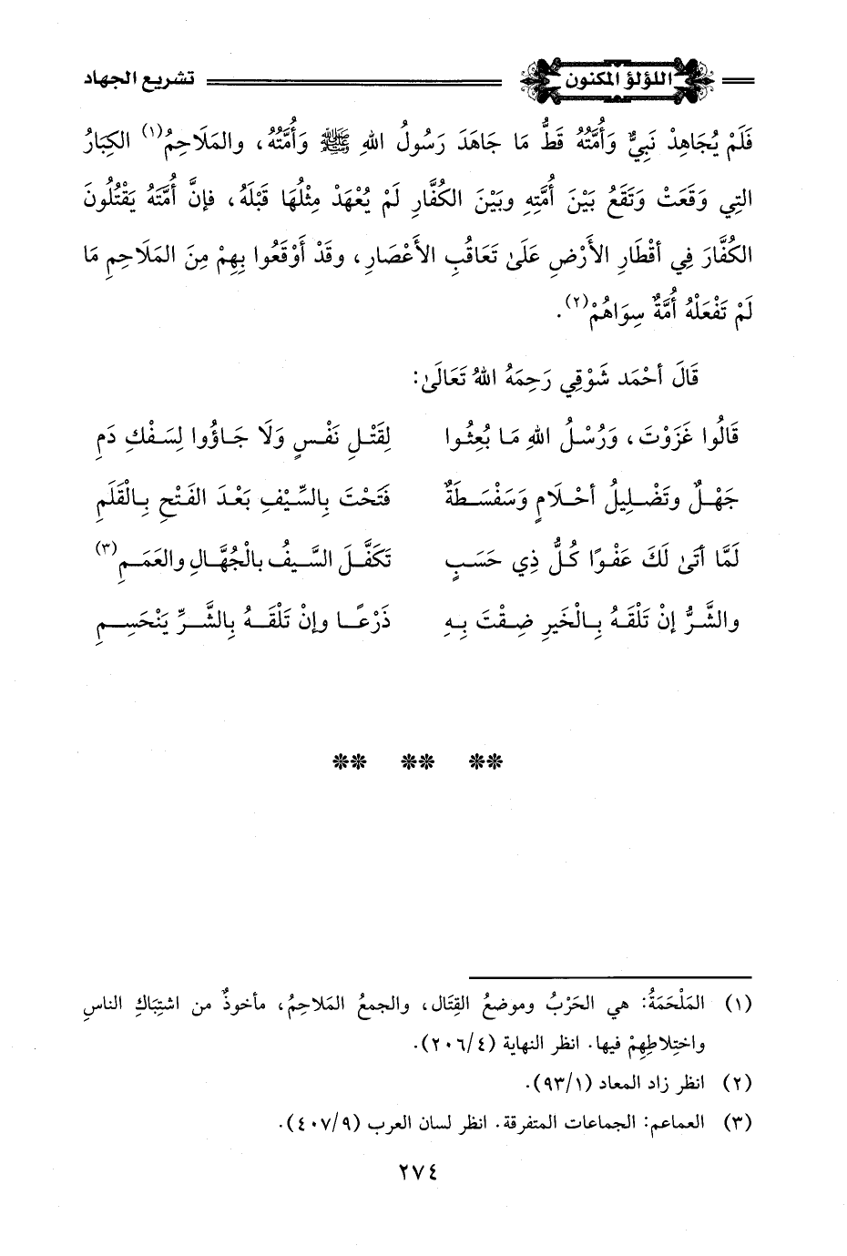 إِذَا عُرِفَ هَذَا، فَالجِهَادُ أرْبَعُ مَرَاتِبَ: جِهَادُ النَّفْسِ، وجِهَادُ الشَّيْطَانِ، وجِهَادُ الكُفَّارِ، وجِهَادُ المُنَافِقِينَ.