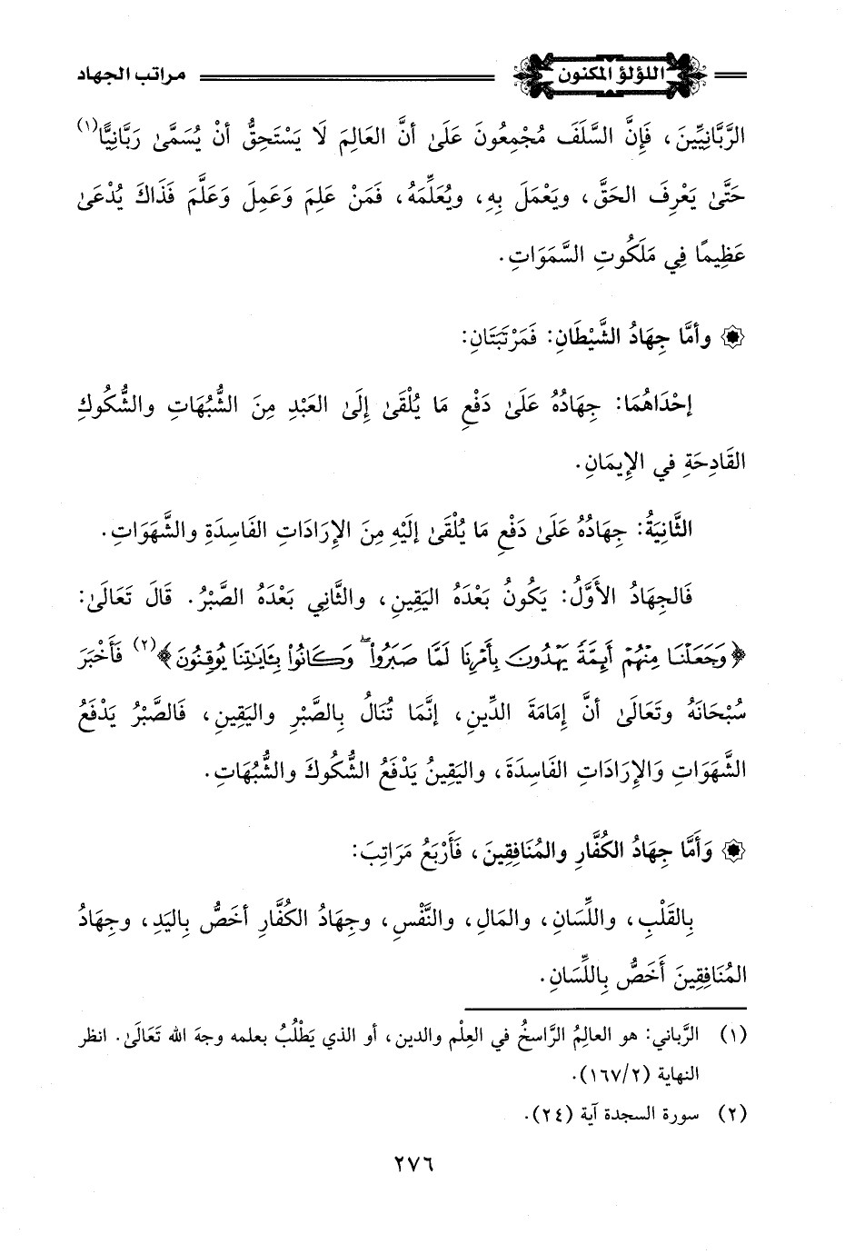 * وَأَمَّا جِهَادُ أرْبَابِ الظُّلْمِ، والبِدع، والمُنْكَرَاتِ، فَثَلَاثُ مَرَاتِبَ: