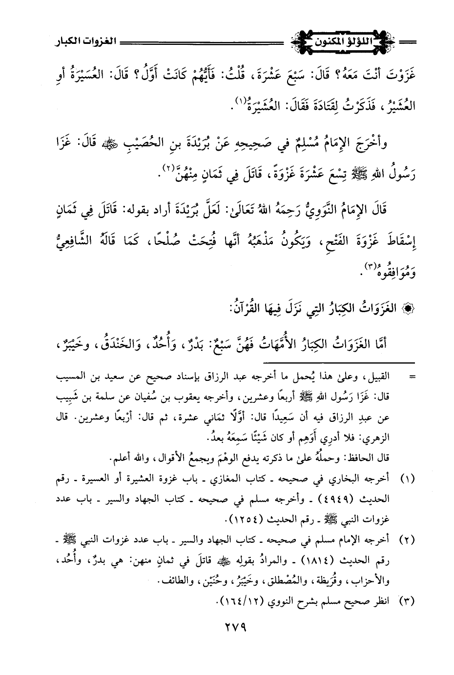 وَلَيْسَ مَعْنَى هَذَا أَنَّ القُرْآنَ لَمْ يَنْزِلْ إِلَّا فِي هَذِهِ الغَزَوَاتِ السَّبْعِ، بَلْ نَزَلَ القُرْآنُ فِي غَيْرِ هَذِهِ الغَزَوَاتِ، مِثْلَ: غَزْوَةِ بَنِي النَّضِيرِ، وَنُزُولِ سُورَةِ الحَشْرِ فِيهَا، وَغَيْرِهَا.