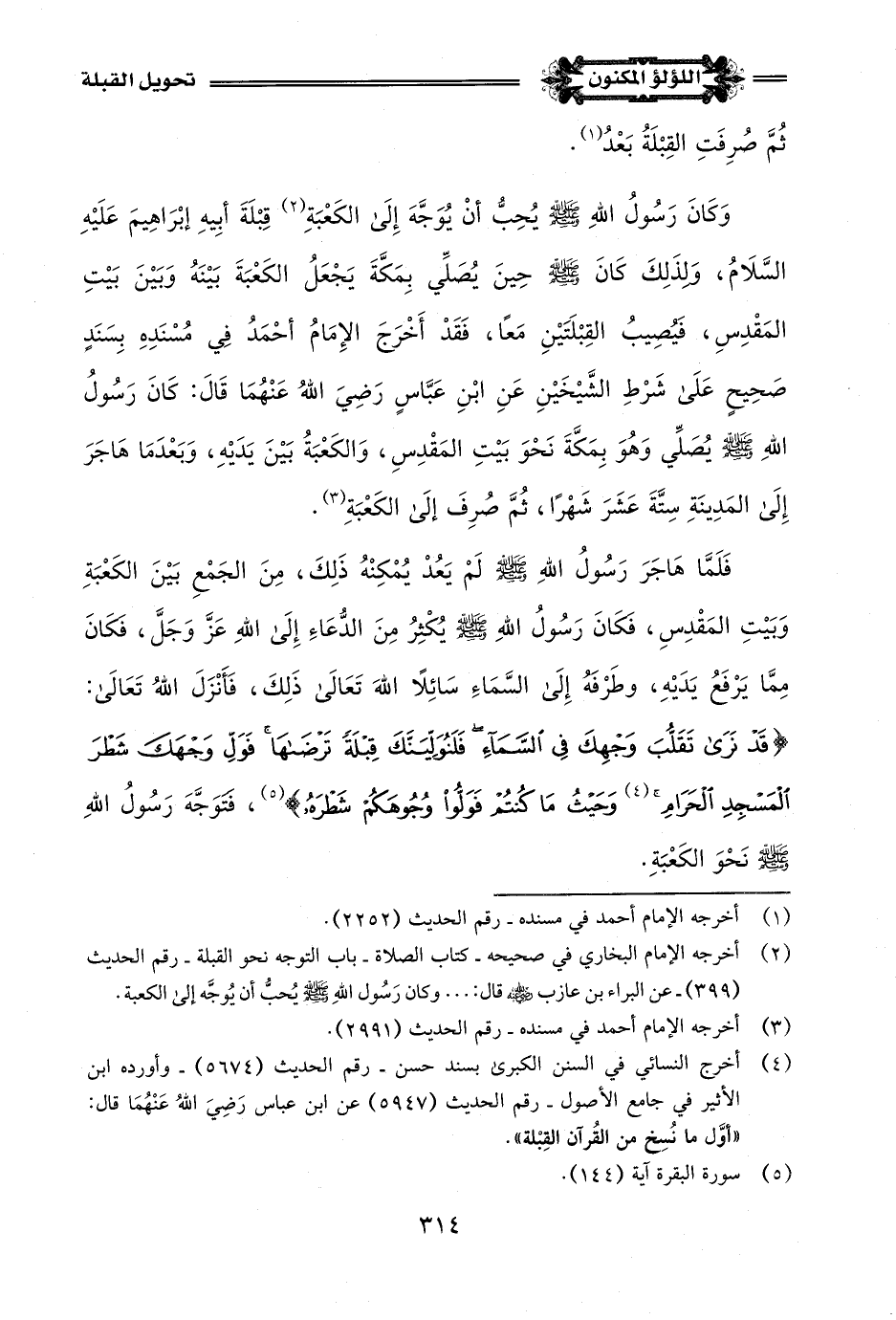(¬2) أخرجه البخاري في صحيحه - كتاب الصلاة - باب التوجه نحو القبلة - رقم الحديث (399) - وأخرجه الإمام أحمد في مسنده - رقم الحديث (18707).