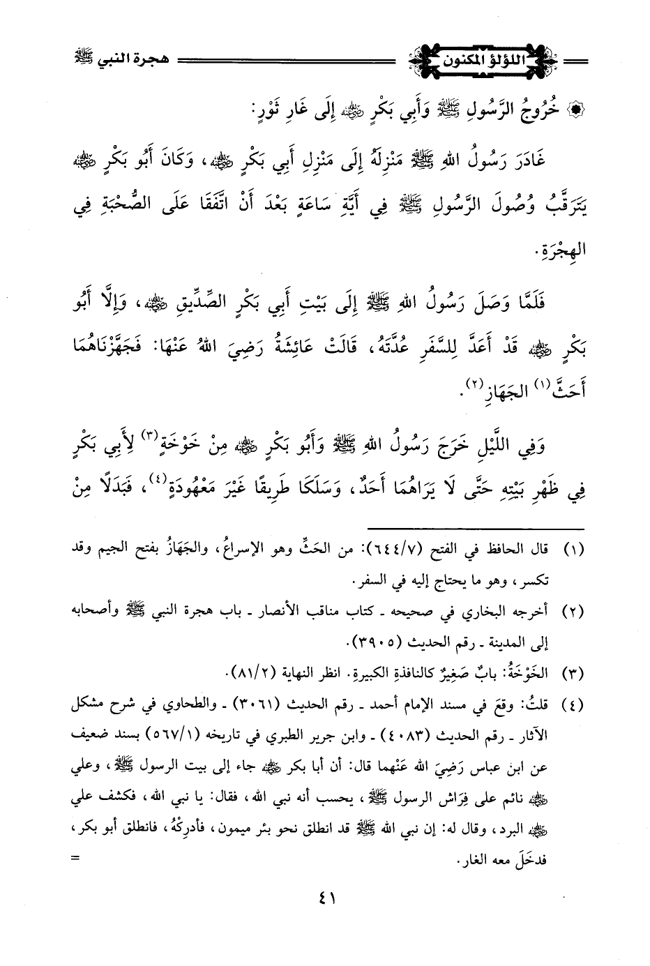(¬4) انظر دلائل النبوة للبيهقي (2/ 470) - شرح المواهب (9612) - الطبقات الكبرى لابن سعد (1/ 109) - سيرة ابن هشام (2/ 96).