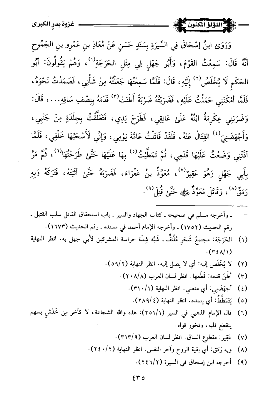 (¬4) أخرجه البخاري في صحيحه - كتاب المغازي - باب قتل أبي جهل - رقم الحديث (3976) - وأخرجه مسلم في صحيحه - كتاب الجنة وصفة نعيمها - رقم الحديث (2875) - وأخرجه الإمام أحمد في مسنده - رقم الحديث (16359).