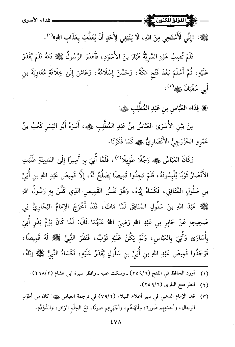 (¬1) أخرجه الحاكم في المستدرك وصححه - كتاب معرفة الصحابة - باب ذكر فداء العباس يوم بدر - رقم الحديث (5460) - وإسناده حسن.
