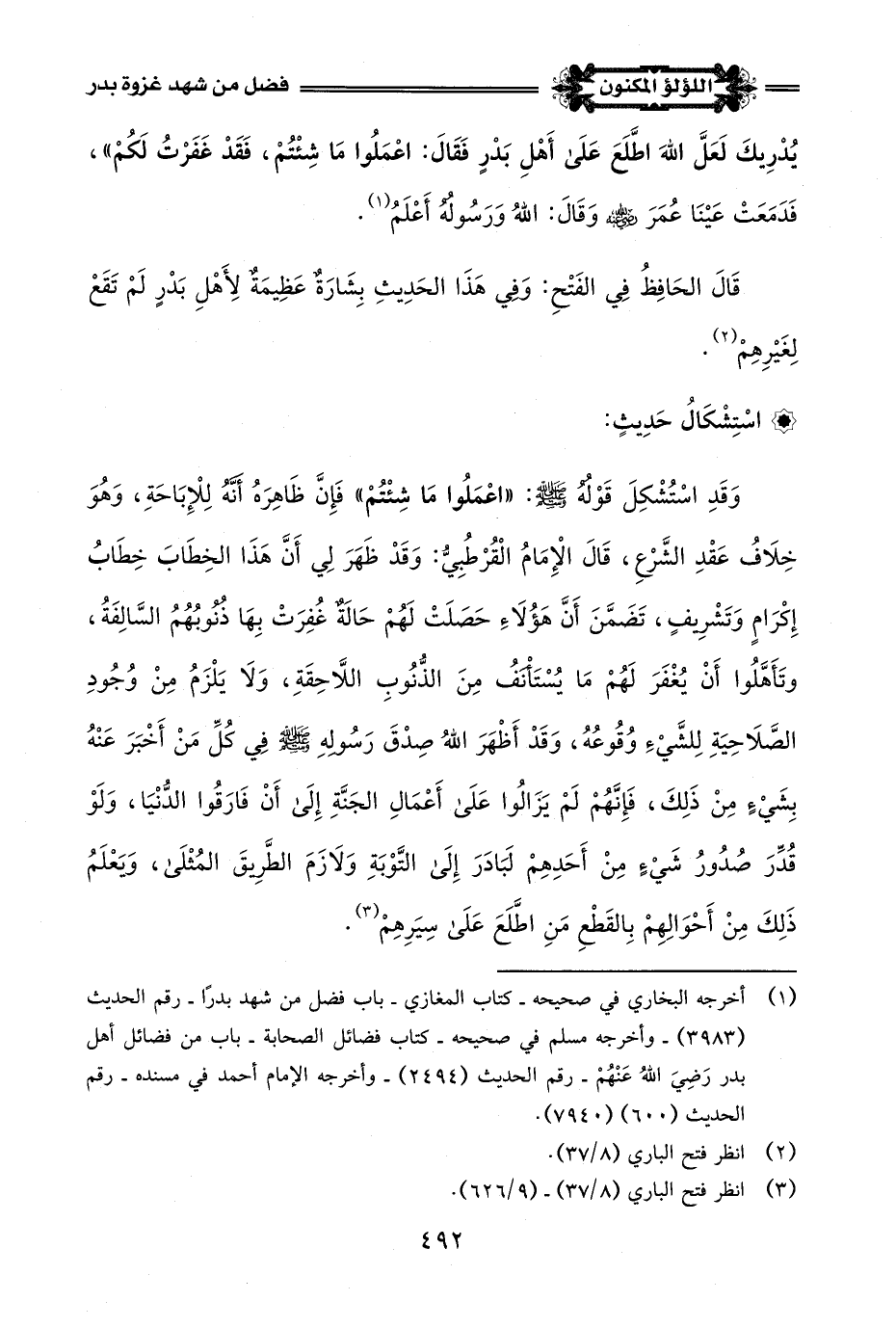 أَخْرَجَ الإِمَامُ البُخَارِيُّ فِي صَحِيحِهِ عَنِ ابْنِ عُمَرَ رَضِيَ اللَّهُ عَنْهُمَا قَالَ: