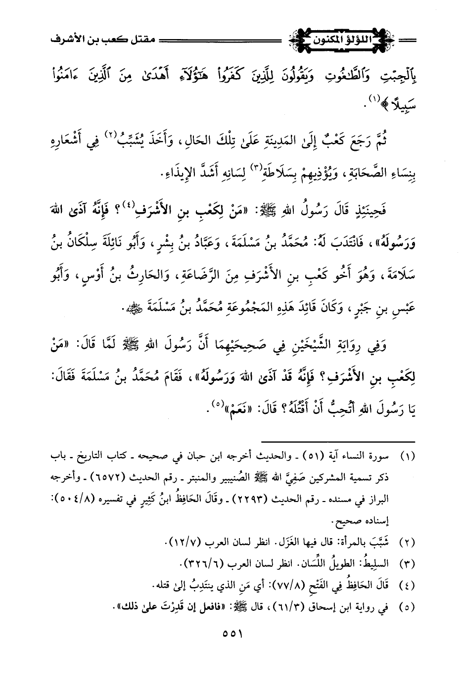(¬3) أخرج قصة مقتل كعب بن الأشرف: البخاري في صحيحه - كتاب المغازي - باب قتل كعب بن الأشرف - رقم الحديث (4037) - وأخرجه مسلم في صحيحه - كتاب =