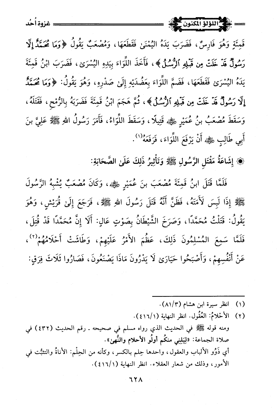 وَأَمَّا الرَّسُولُ -صلى اللَّه عليه وسلم- فَقَدْ ثَبَتَ في سَاحَةِ المَعْرَكَةِ ثَبَاتَ الجِبَالِ الرَّاسِيَاتِ،