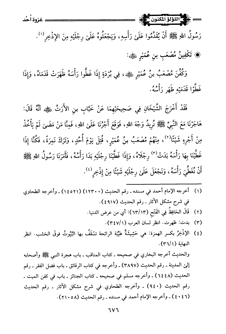 (¬3) أخرجه ابن سعد في طبقاته (3/ 288) - وأخرجه الإمام مالك في الموطأ - كتاب الجهاد - باب الدفن في قبر واحد للضرورة - وصحح إسناده الحافظ في الفتح (3/ 580).