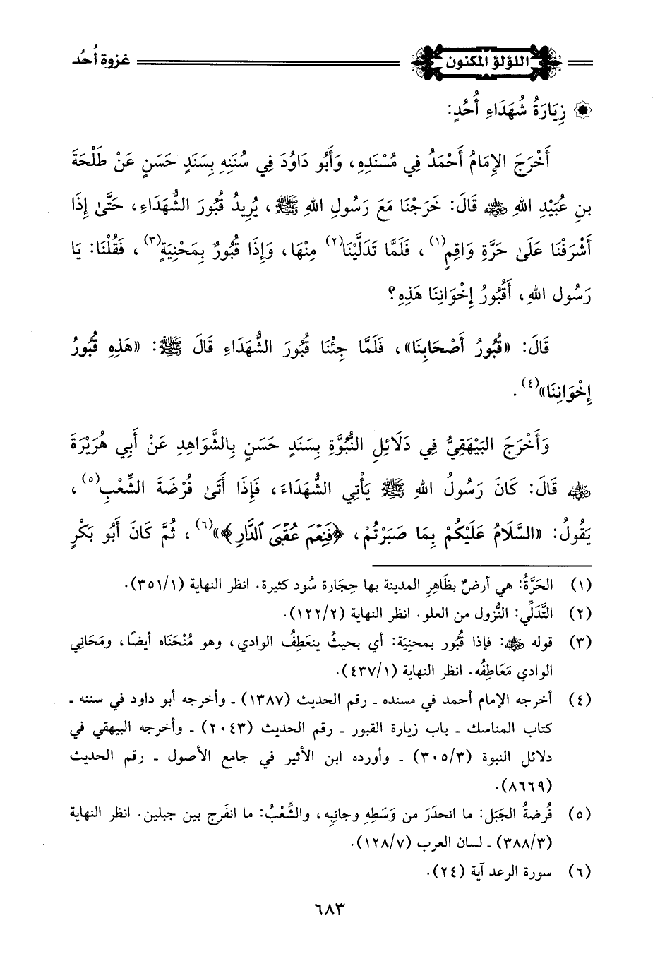 (¬1) أخرجه الإمام أحمد في مسنده - رقم الحديث (15492) - وأخرجه الحاكم في المستدرك - كتاب الدعاء والتكبير - باب دعاؤه -صلى اللَّه عليه وسلم- يوم أُحد - رقم الحديث (1911) - (4364) - وأخرجه النسائي في السنن الكبرى - كتاب عمل اليوم والليلة - رقم الحديث (10370) - والبخاري في الأدب المفرد - رقم الحديث (699).