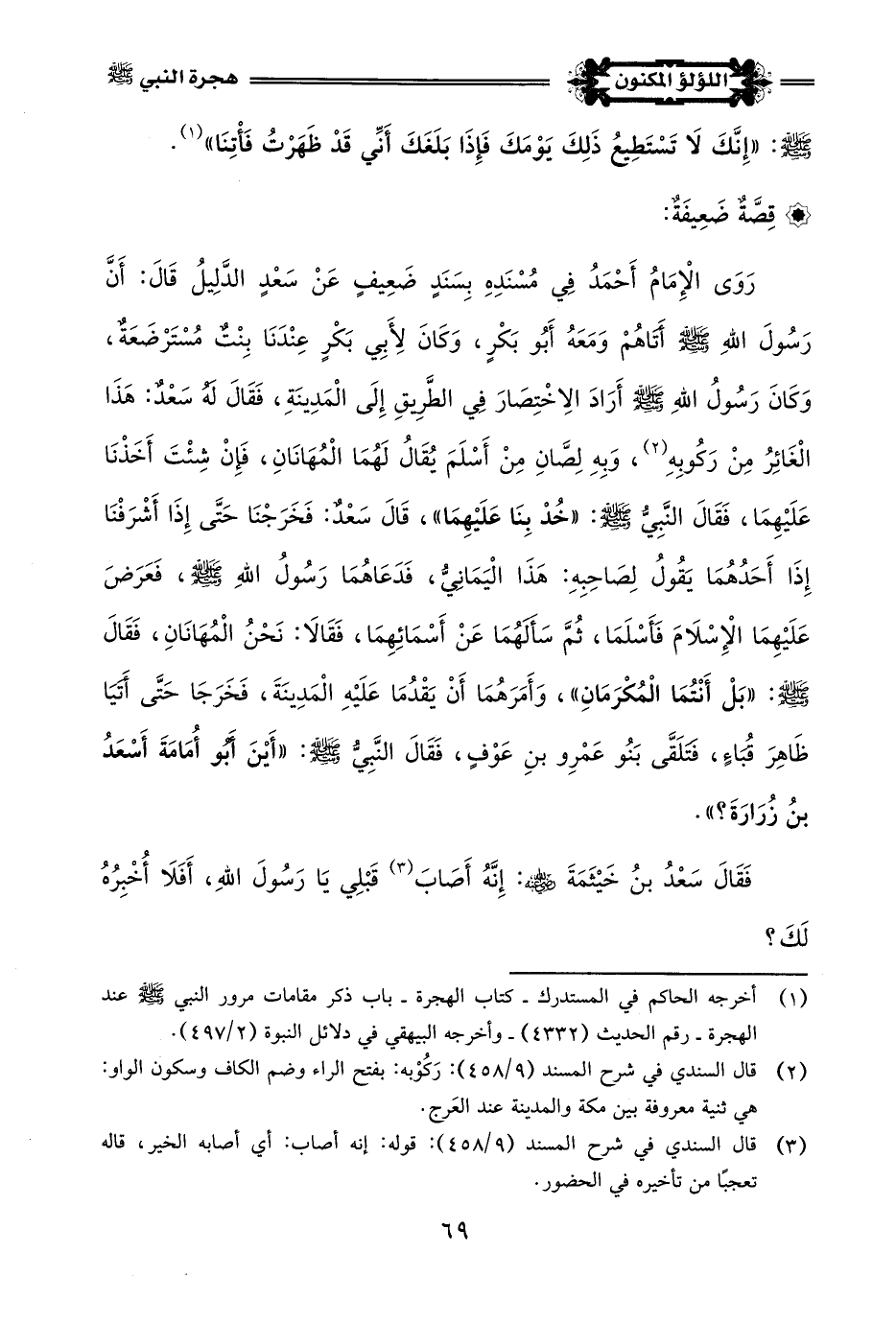 رَوَى الحَاكِمُ فِي المُسْتَدْرَكِ وَالبَيْهَقِيُّ فِي الدَّلَائِلِ بِسَنَدٍ صَحِيحٍ عَلَى شَرْطِ الإِمَامِ مُسْلِمٍ عَنْ قَيْسِ بنِ النُّعْمَانِ قَالَ: لَمَّا انْطَلَقَ النَّبِيُّ -صلى اللَّه عليه وسلم- وَأَبُو بَكْرٍ