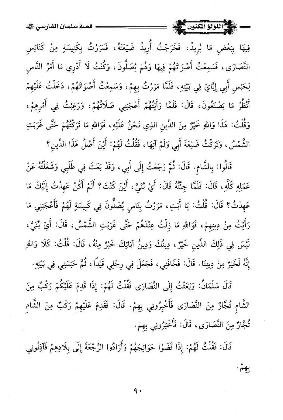 قَالَ سَلْمَانُ: وَبَعَثْتُ إِلَى النَّصَارَى فَقُلْتُ لَهُمْ: إِذَا قَدِمَ عَلَيْكُمْ رَكْبٌ مِنَ الشَّامِ تُجَّارٌ مِنَ النَّصَارَى فَأَخْبِرُونِي بِهِمْ. قَالَ: فَقَدِمَ عَلَيْهِمْ رَكْبٌ مِنَ الشَّامِ تُجَّارٌ مِنَ النَّصَارَى، قَالَ: فَأَخْبَرُونِي بِهِمْ.