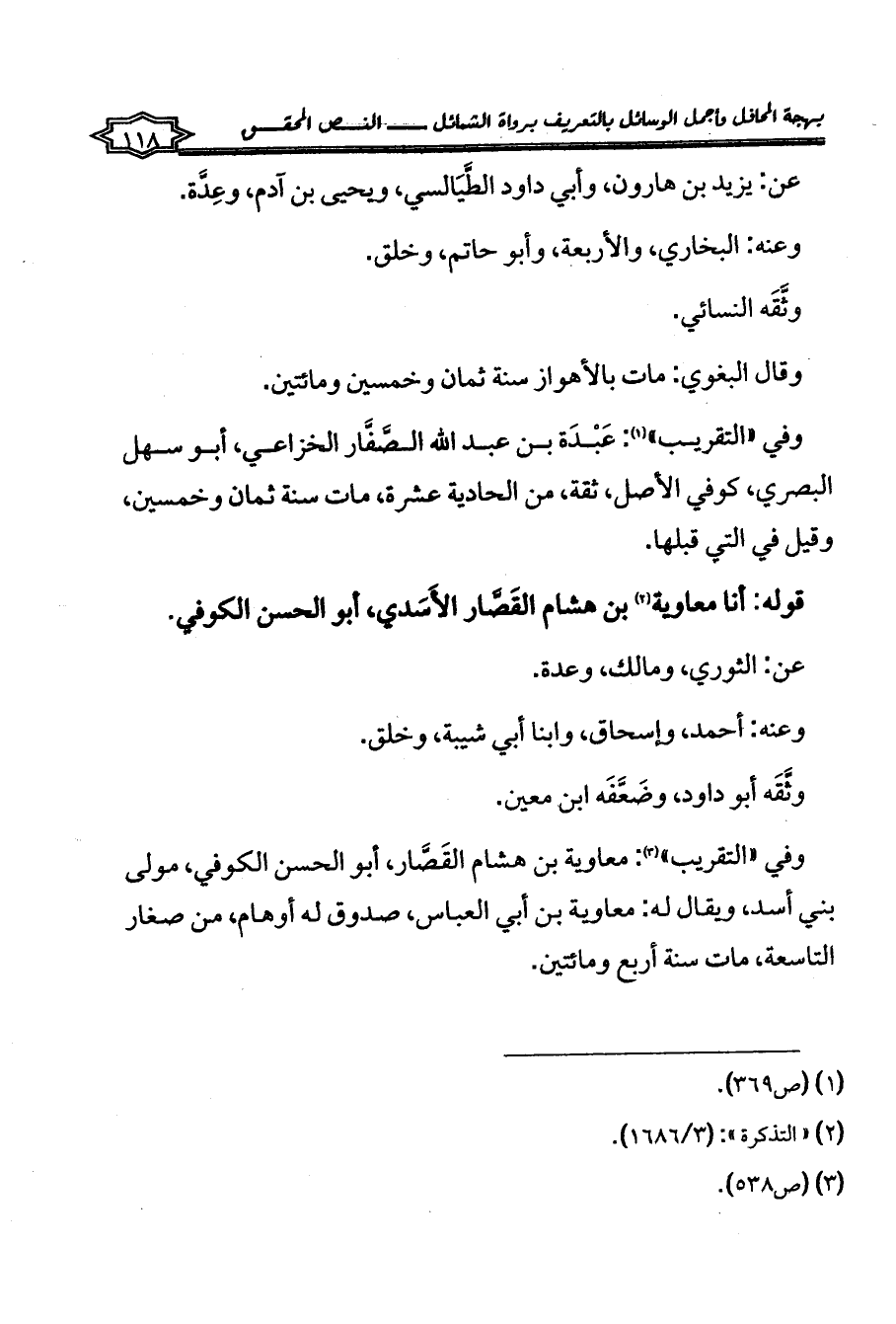 وفي «التقريب» (¬3): معاوية بن هشام القَصَّار، أبو الحسن الكوفي، مولى بني أسد، ويقال له: معاوية بن أبي العباس، صدوق له أوهام، من صغار التاسعة، مات سنة أربع ومائتين.