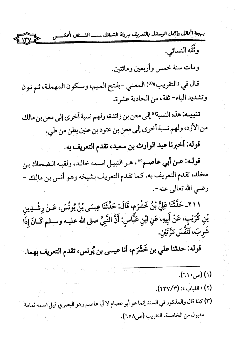 (¬3) كذا قال والمذكور في السند إنما هو أبو عصام لا أبا عاصم وهو البصري قيل اسمه ثمامة مقبول من الخامسة. التقريب (ص658).