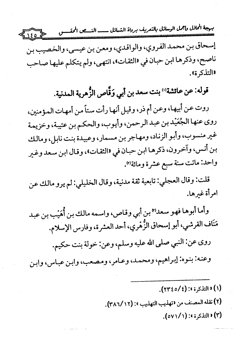 قلت: وقال العجلي: تابعية ثقة مدنية، وقال الخليلي: لم يرو مالك عن امرأة غيرها.