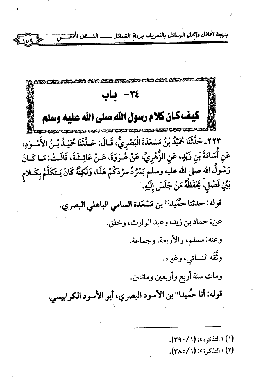 223 - حَدَّثَنَا حُمَيْدُ بْنُ مَسْعَدَةَ الْبَصْرِيُّ، قَالَ: حَدَّثَنَا حُمَيْدُ بْنُ الأَسْوَدِ، عَنِ أُسَامَةَ بْنِ زَيْدٍ، عَنِ الزُّهْرِيِّ، عَنْ عُرْوَةَ، عَنْ عَائِشَةَ، قَالَتْ: مَا كَانَ رَسُولُ اللهِ صلى الله عليه وسلم يَسْرُدُ سرْدَكُمْ هَذَا، وَلَكِنَّهُ كَانَ يَتَكَلَّمُ بِكَلامٍ بَيِّنٍ فَصْلٍ، يَحْفَظُهُ مَنْ جَلَسَ إِلَيْهِ.