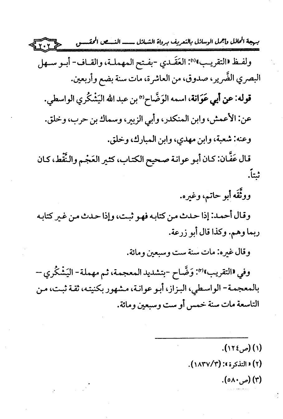 وفي «التقريب» (¬3): وَضَّاح -بتشديد المعجمة، ثم مهملة- اليَشْكُري -بالمعجمة- الواسطي، البزاز، أبو عوانة، مشهور بكنيته، ثقة ثبت، من التاسعة مات سنة خمس أو ست وسبعين ومائة.