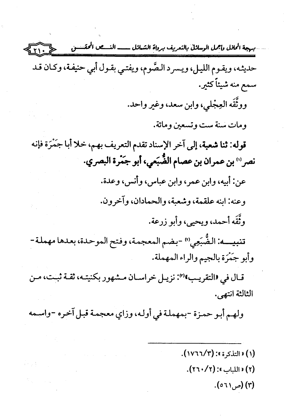تنبيه: الضُّبَعِي (¬2) -بضم المعجمة، وفتح الموحدة، بعدها مهملة- وأبو جَمْرَة بالجيم والراء المهملة.