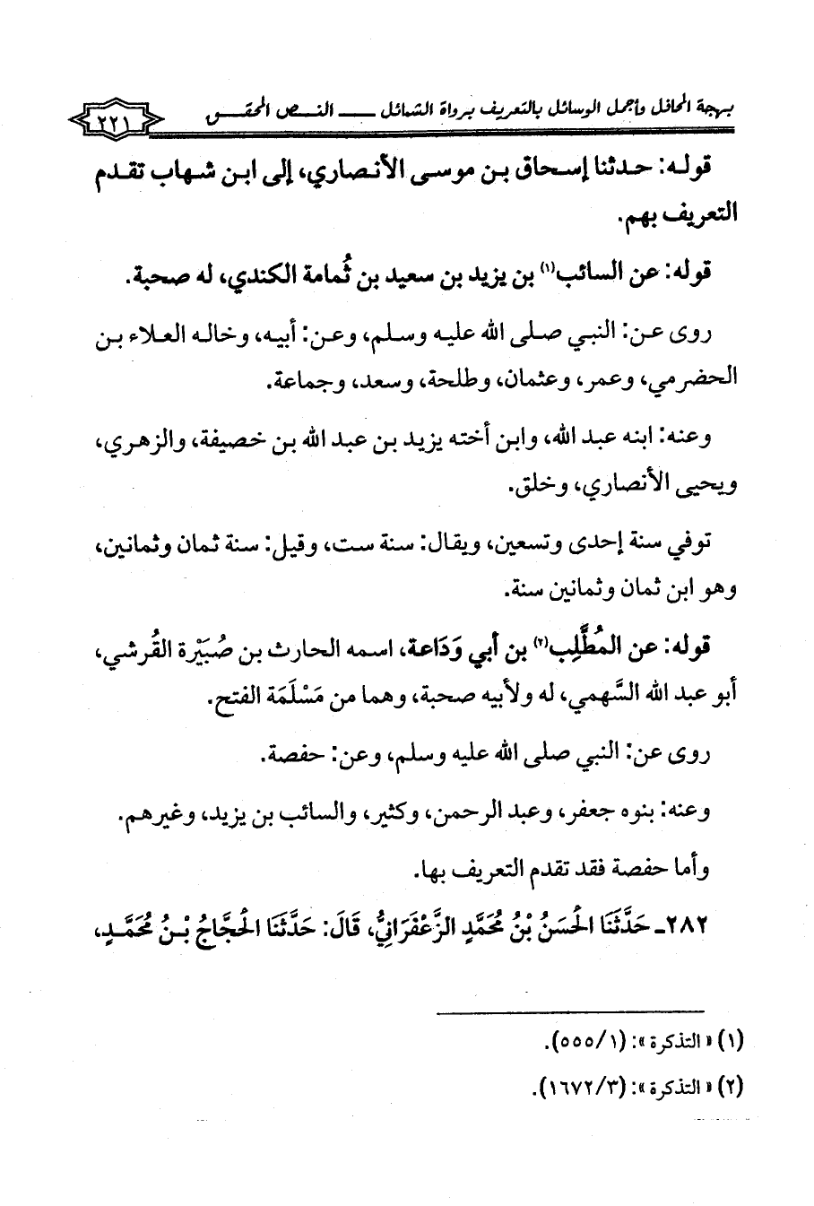 قوله: عن السائب (¬1) بن يزيد بن سعيد بن ثُمامة الكندي، له صحبة.