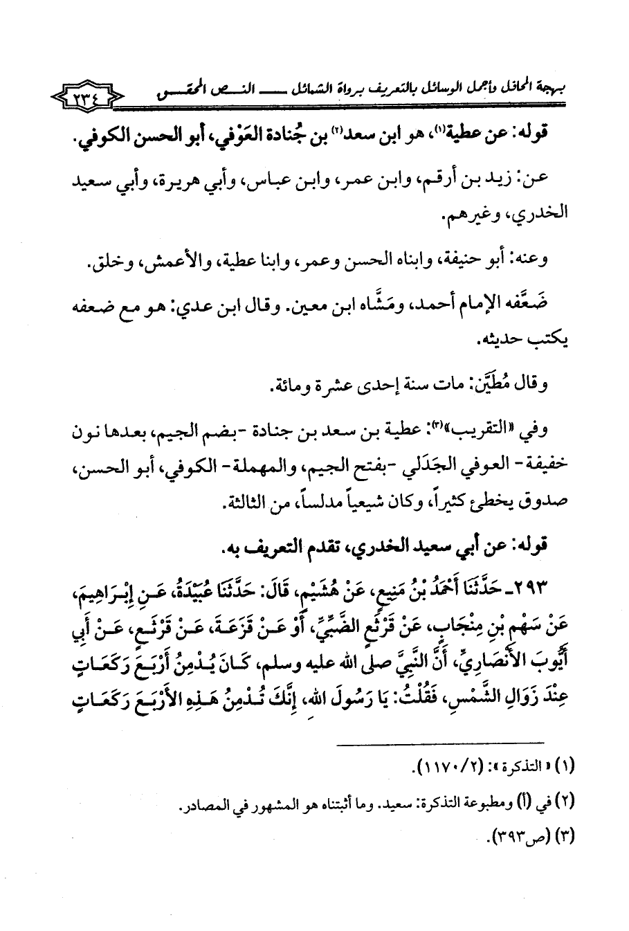 وفي «التقريب» (¬3): عطية بن سعد بن جنادة -بضم الجيم، بعدها نون خفيفة- العوفي الجَدَلي -بفتح الجيم، والمهملة- الكوفي، أبو الحسن، صدوق يخطئ كثيراً، وكان شيعياً مدلساً، من الثالثة.