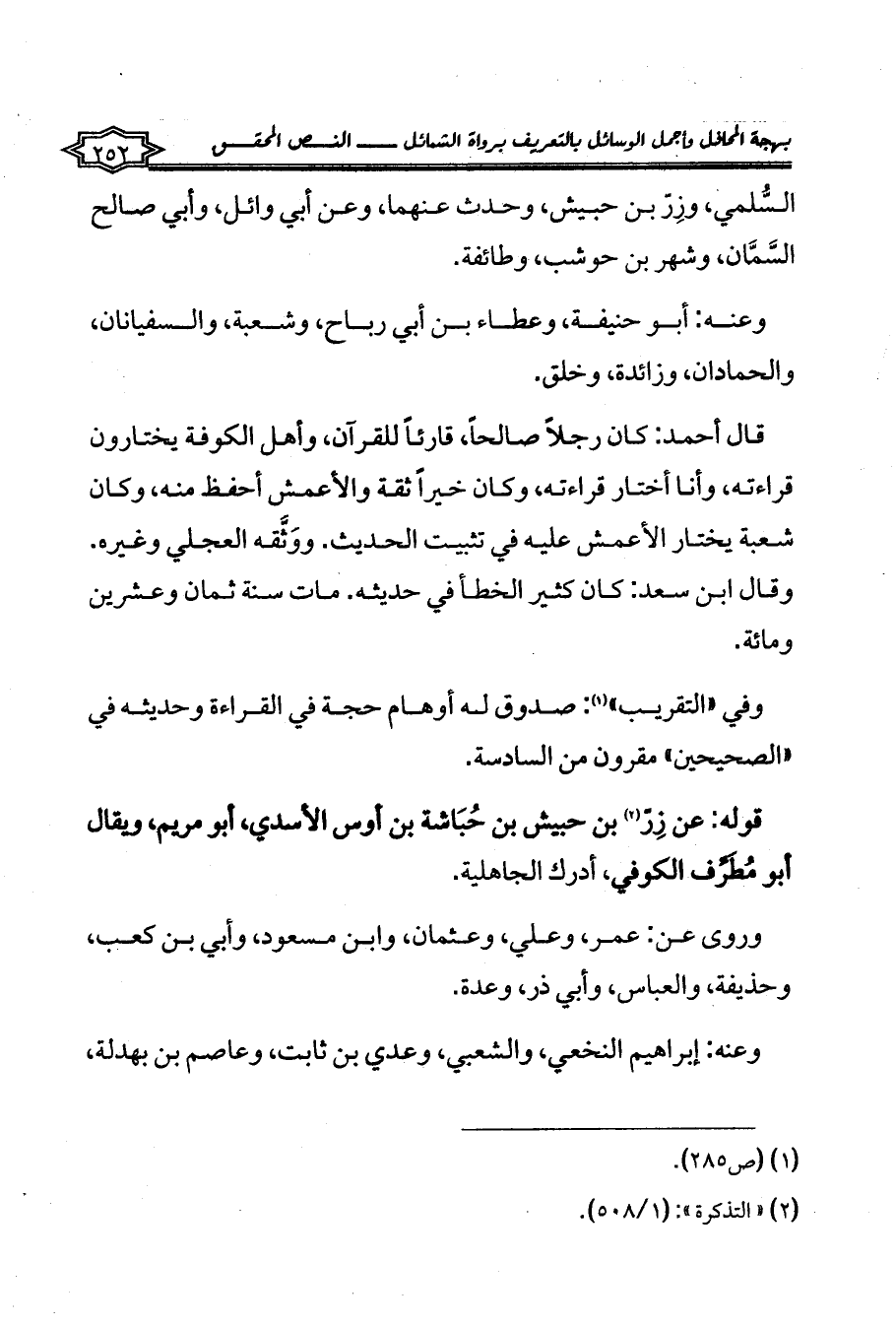قوله: عن زِرّ (¬2) بن حبيش بن حُبَاشة بن أوس الأسدي، أبو مريم، ويقال أبو مُطَرِّف الكوفي، أدرك الجاهلية.