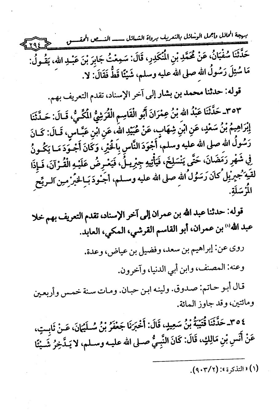 353 - حَدَّثَنَا عَبْدُ اللهِ بْنُ عِمْرَانَ أَبُو الْقَاسِمِ الْقُرَشِيُّ الْمَكِّيُّ، قَالَ: حَدَّثَنَا إِبْرَاهِيمُ بْنُ سَعْدٍ، عَنِ ابْنِ شِهَابٍ، عَنْ عُبَيْدِ اللهِ، عَنِ ابْنِ عَبَّاسٍ، قَالَ: كَانَ رَسُولُ اللهِ صلى الله عليه وسلم، أَجْوَدَ النَّاسِ بِالْخَيْرِ، وَكَانَ أَجْوَدَ مَا يَكُونُ فِي شَهْرِ رَمَضَانَ، حَتَّى يَنْسَلِخَ، فَيَأْتِيهِ جِبْرِيلُ، فَيَعْرِضُ عَلَيْهِ الْقُرْآنَ، فَإِذَا لَقِيَهُ جِبْرِيلُ كَانَ رَسُولُ اللهِ صلى الله عليه وسلم، أَجْوَدَ بِالْخَيْرِ مِنَ الرِّيحِ الْمُرْسَلَةِ.