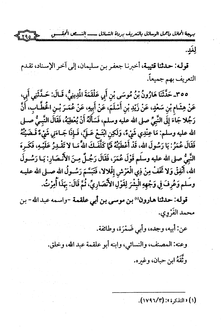 قوله: حدثنا هارون (¬1) بن موسى بن أبي علقمة -واسمه عبد الله- بن محمد الفَرْوِي.